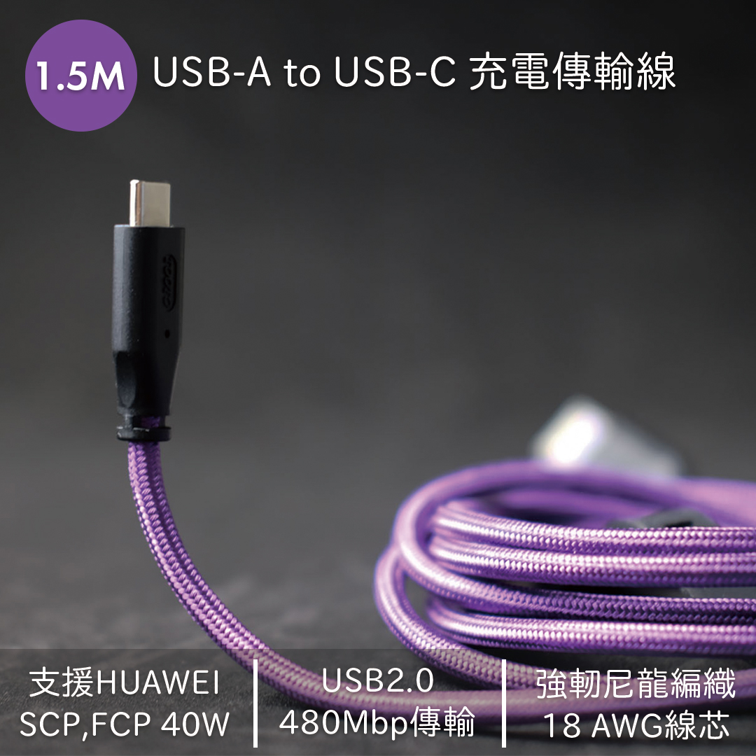 ★支援華為最新40W超級快充 ★使用市面最佳 18AWG 超高規格線芯 ★支援 QC3.0 / QC2.0 / FCP / SCP 快充 ★長度 150 公分,強軔編織線身 ★所有 USB-C 手機、平板、相機、藍牙耳機全適用 ★柔款捆帶,好收納,好攜帶 ★3年產品保固