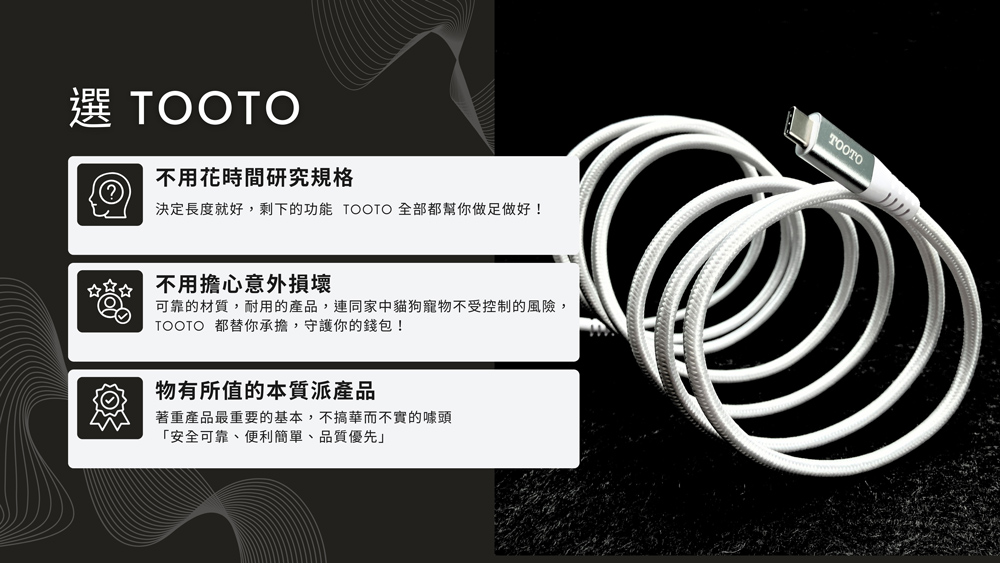 - 贈送TOOTO品牌矽膠束線帶(顏色隨機)