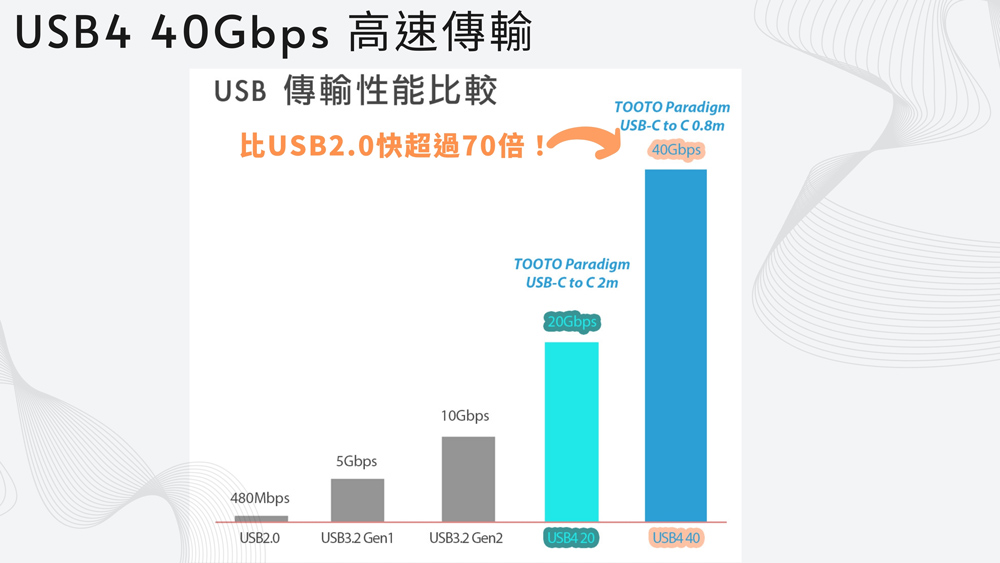 - USB4 40Gb 高速資料傳輸